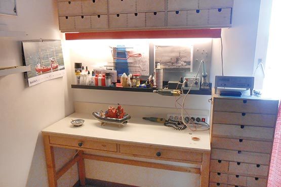 Das Boot kann voll funktionell ausgestattet werden. Alle Lampenkörper können mit LED bestückt werden, die Lackdrähte verschwinden komplett im Mast und Ausleger und werden zentral im Rumpf verschalten. Im Bausatz ist bereits ein Beleuchtungssatz für die nautische Beleuchtung, den Suchscheinwerfer und das Blaulicht enthalten. Der weitere Ausbau der Beleuchtung ist mit Hilfe des LED-Sets 5677/51 machbar.