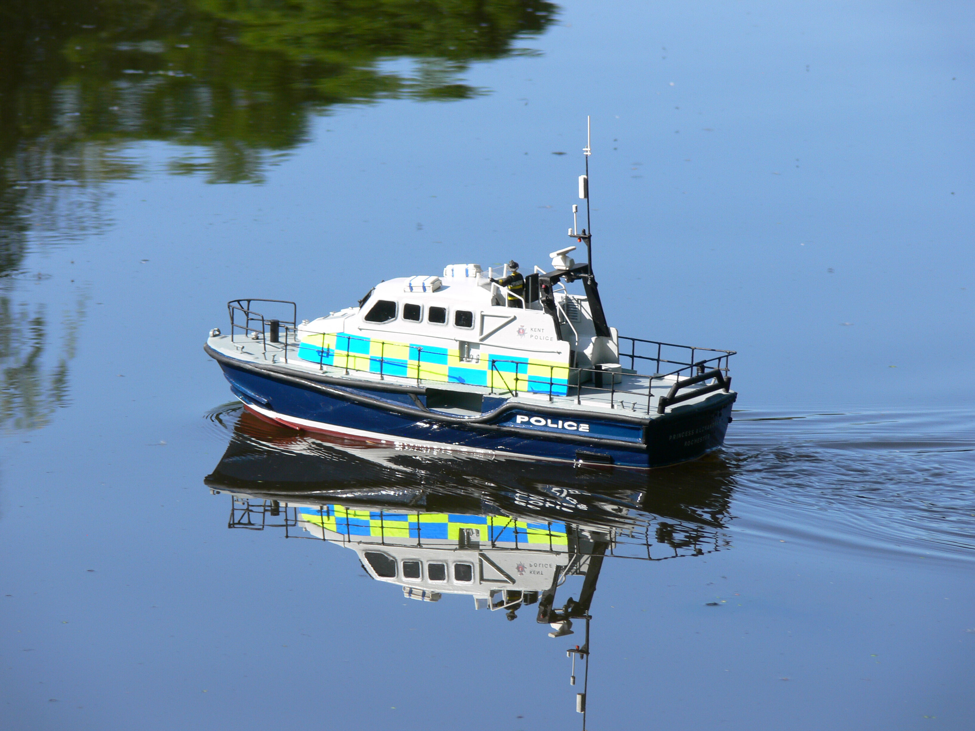 Dann stieß unser Autor auf einen Artikel der Kent Police von 2008, in dem sie voller Stolz von der Anschaffung eines neuen schnellen Patrolboats berichtete. Dieses Boot war der ehemalige Prototyp der Tamar! Und diese Farbgebung! Das knallgelbe/blaue Karoband der britischen Polizei am grauen Aufbau ließ nur einen Schluss zu: So musste das Boot als Modell gebaut werden! Mehr ab Seite 20.