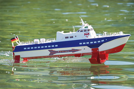 Das FLB-12 ist ein Feuerlöschboot, wie es auf deutschen Binnengewässern zum Einsatz kommt. Es wurde Originalbooten nachempfunden und besticht durch einen sehr hohen Detaillierungsgrad. Angetrieben wird das Modell von einem 28-mm-Außenläufer-Motor.