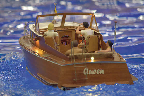 Das Boot kann voll funktionell ausgestattet werden. Alle Lampenkörper können mit LED bestückt werden, die Lackdrähte verschwinden komplett im Mast und Ausleger und werden zentral im Rumpf verschalten. Im Bausatz ist bereits ein Beleuchtungssatz für die nautische Beleuchtung, den Suchscheinwerfer und das Blaulicht enthalten. Der weitere Ausbau der Beleuchtung ist mit Hilfe des LED-Sets 5677/51 machbar.