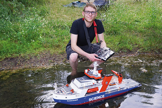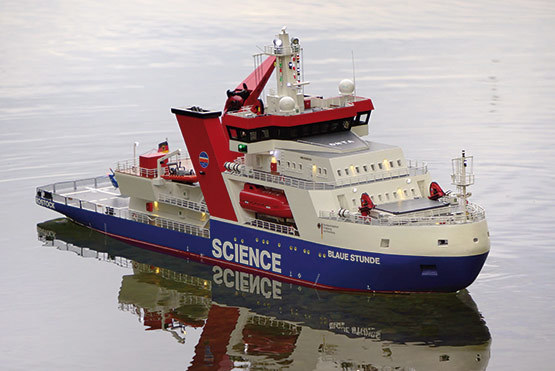 Es gibt Modelle, die baut man in wenigen Wochen, die meisten benötigen jedoch etwas mehr Zeit. Dann gibt es aber auch Projekte, die im Zeitraum von mehreren Jahren entstehen. Dazu zählt das Forschungsschiff Blaue Stunde im Maßstab 1:75, das von Patrick Bosse von 2011 bis 2018 gefertigt wurde. Der aufwendige und hochdetaillierte Eigenbau wurde u. a. mit drehbaren Suchscheinwerfern, Freifallankerwinde, einem funktionsfähigen Kran, einem beweglichen Helikopter sowie einer umfangreichen LED-Beleuchtung ausgestattet. Patrick stellt in unserem großen SCHIFFSPROPELLER-Spezial ab Seite 50 in der MODELLWERFT 11/2018 seine hochdetaillierte, gut einen Meter lange Blaue Stunde ausführlich vor.