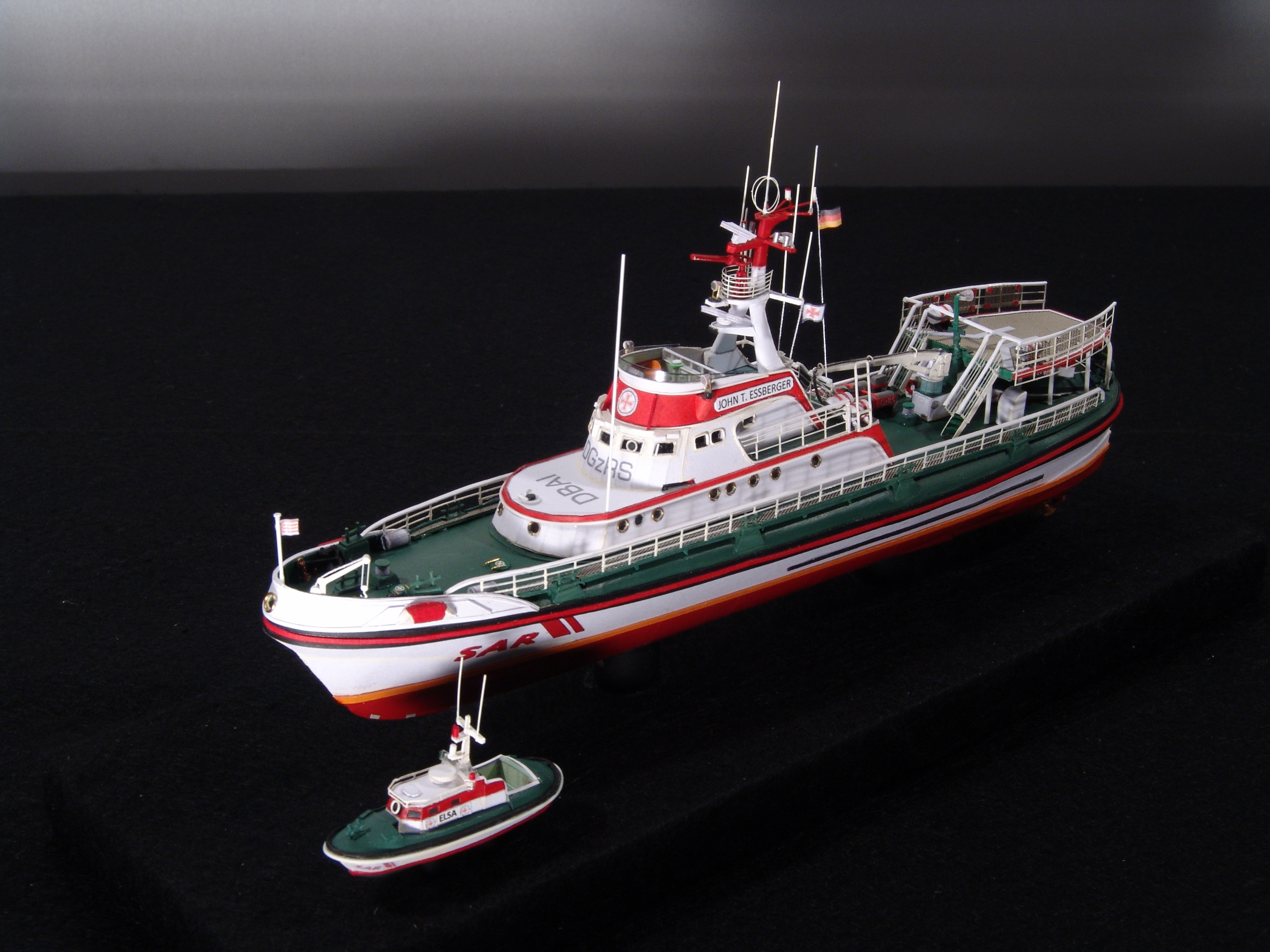 Die heutigen Seenotrettungskreuzer entstehen aus dem Baukasten, unter Beachtung der nötigen Anforderungen. Es könnten aber auch Polizeiboote, Zollkreuzer, etc., damit umgesetzt werden. Ein Grund für unseren Autor, die John T. Essberger noch einmal als 1:200-Vollrumpfmodell in Kartonbauweise umzusetzen. Als Basis diente ihm das gut detaillierte 1:250-Wasserlinien-Modell aus dem HMV-Verlag. Mehr zu diesem höchst detailgetreuen Seenotrettungskreuzermodell lesen Sie in der ModellWerft 11/2020 ab Seite 16.
