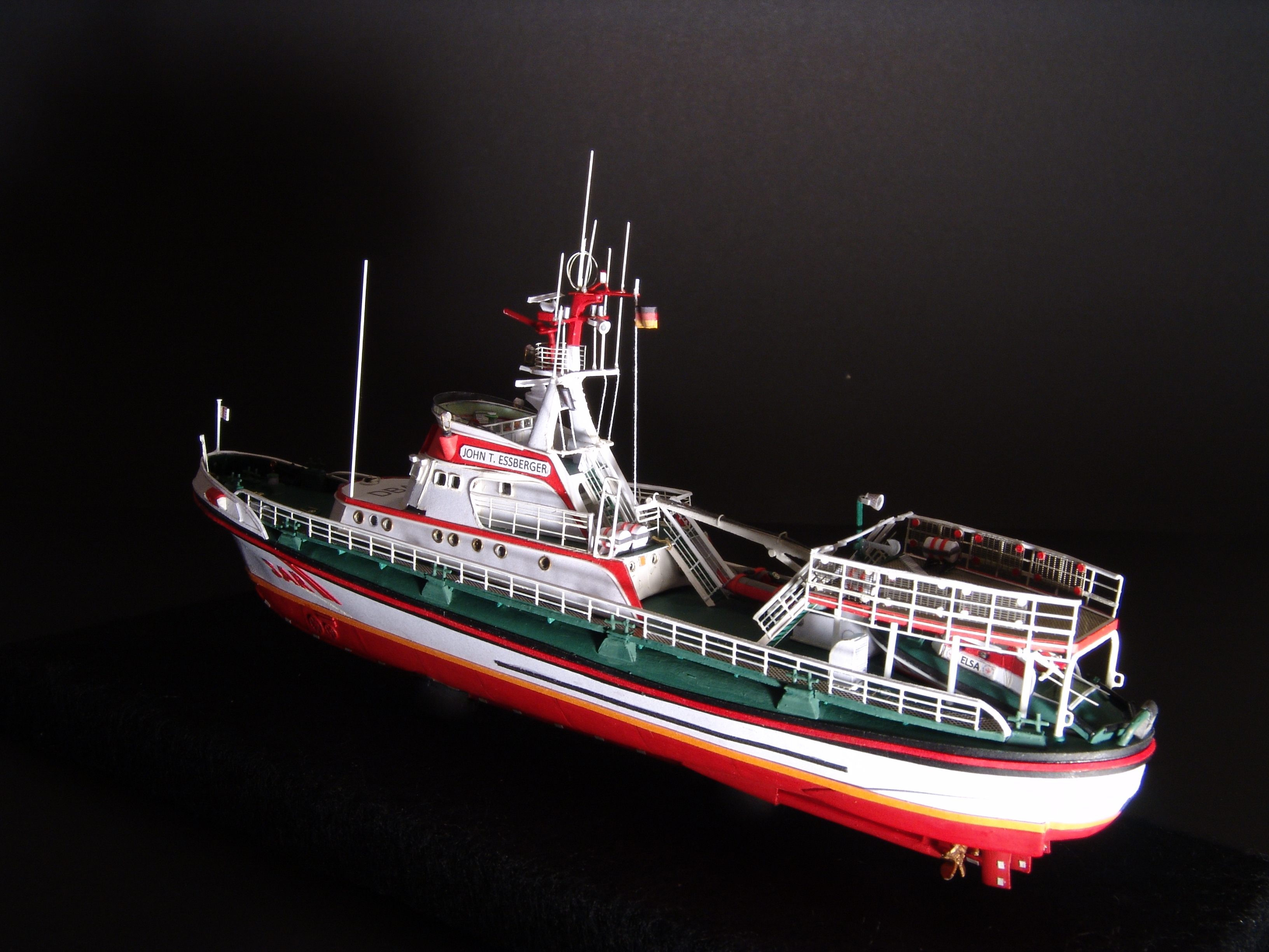Die John T. Essberger ist noch ein Seenotrettungskreuzer aus der Zeit, als die konstruktiven Entwürfe noch Alleinstellungsmerkmale besaßen. Man sah das Boot und wusste sofort, das ist ein Seenotrettungskreuzer. Ein Merkmal, das Hartmut Brenneis als Modellbauer natürlich anspricht.