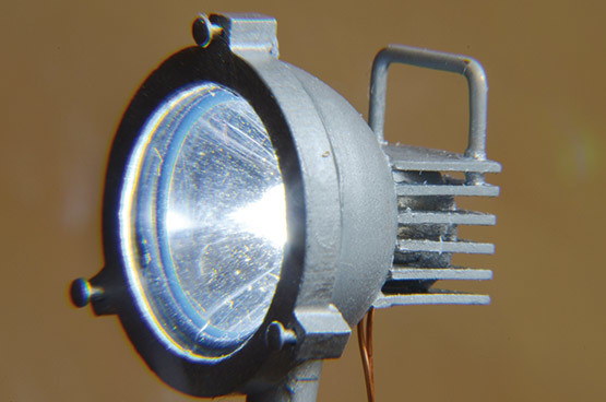 Das Boot kann voll funktionell ausgestattet werden. Alle Lampenkörper können mit LED bestückt werden, die Lackdrähte verschwinden komplett im Mast und Ausleger und werden zentral im Rumpf verschalten. Im Bausatz ist bereits ein Beleuchtungssatz für die nautische Beleuchtung, den Suchscheinwerfer und das Blaulicht enthalten. Der weitere Ausbau der Beleuchtung ist mit Hilfe des LED-Sets 5677/51 machbar.