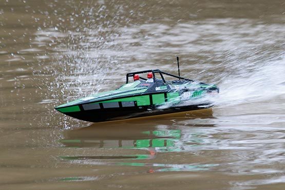Das FLB-12 ist ein Feuerlöschboot, wie es auf deutschen Binnengewässern zum Einsatz kommt. Es wurde Originalbooten nachempfunden und besticht durch einen sehr hohen Detaillierungsgrad. Angetrieben wird das Modell von einem 28-mm-Außenläufer-Motor.