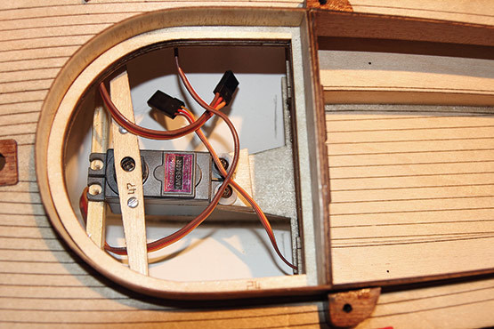 Die beiden Löschmonitore sind mit Hilfe der optionalen Wasserpumpe 7003/90 funktionsfähig und liegen dem Bausatz bei, ebenso die benötigten Kupplungen und Anschlüsse für die Schlauchführungen. Das Spantgerüst im Rumpf sieht den Einbau der Wasserpumpe bereits vor und die ausführlich gestaltete Bauanleitung zeigt genau deren Einbau und Anschluß.