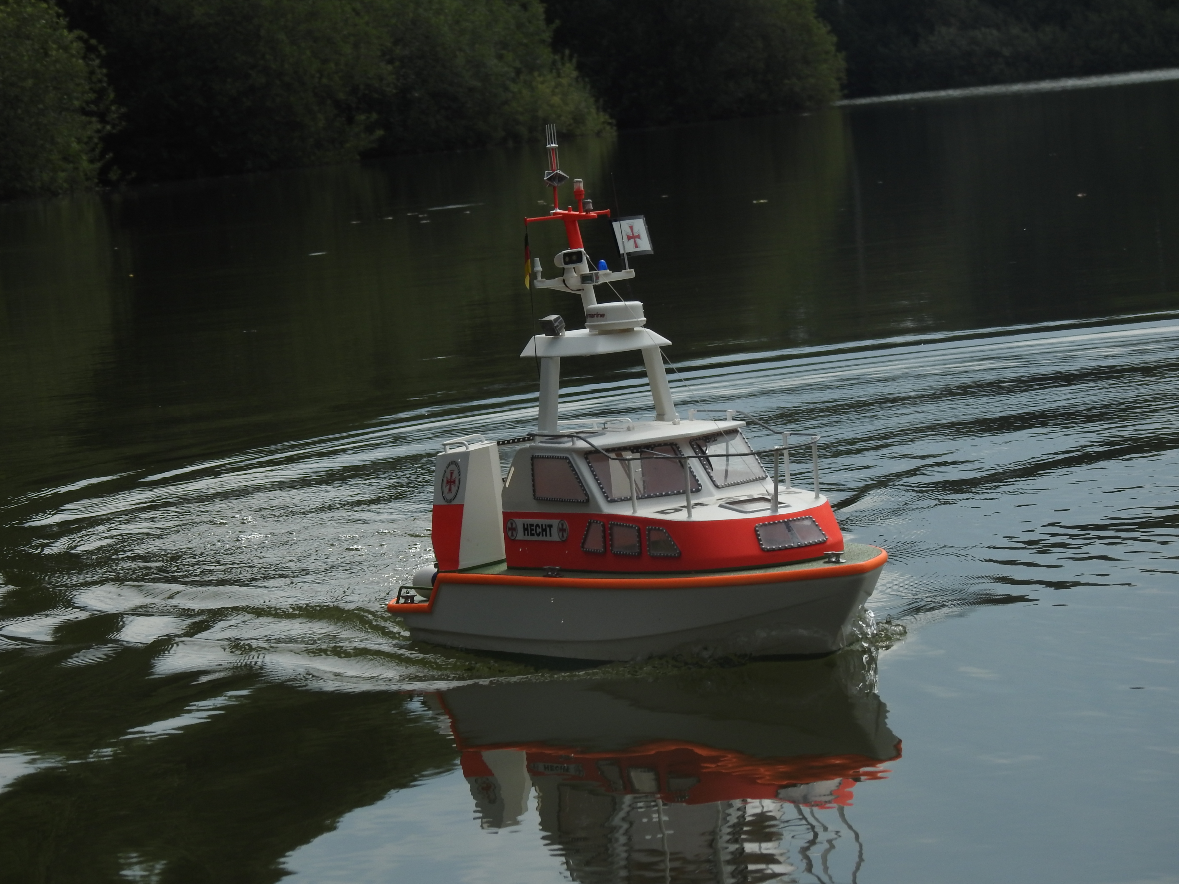 Das FLB-12 ist ein Feuerlöschboot, wie es auf deutschen Binnengewässern zum Einsatz kommt. Es wurde Originalbooten nachempfunden und besticht durch einen sehr hohen Detaillierungsgrad. Angetrieben wird das Modell von einem 28-mm-Außenläufer-Motor.