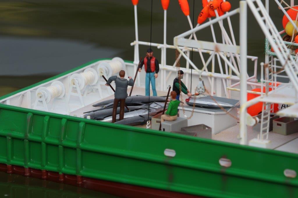 Das Boot kann voll funktionell ausgestattet werden. Alle Lampenkörper können mit LED bestückt werden, die Lackdrähte verschwinden komplett im Mast und Ausleger und werden zentral im Rumpf verschalten. Im Bausatz ist bereits ein Beleuchtungssatz für die nautische Beleuchtung, den Suchscheinwerfer und das Blaulicht enthalten. Der weitere Ausbau der Beleuchtung ist mit Hilfe des LED-Sets 5677/51 machbar.