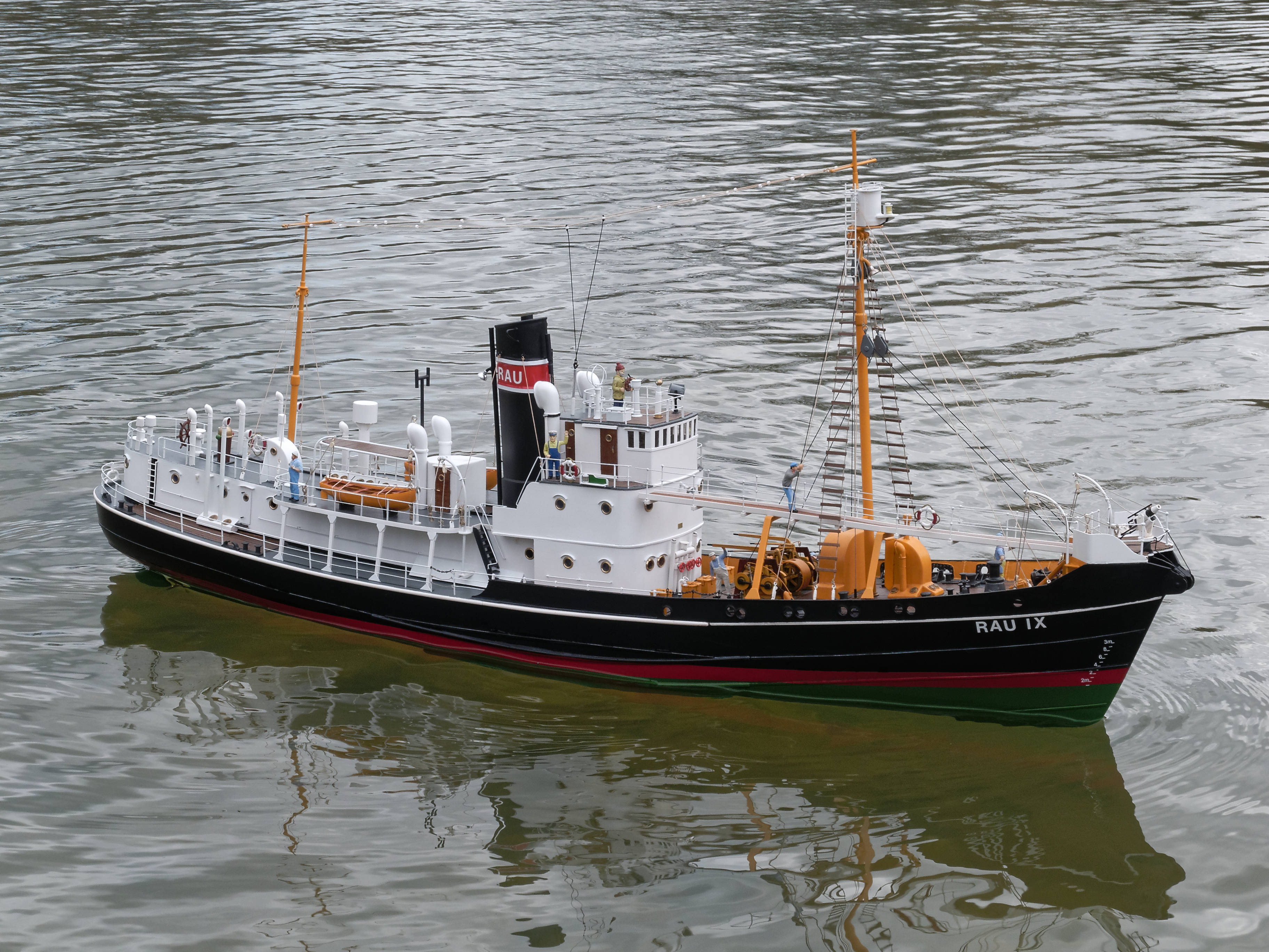 Das FLB-12 ist ein Feuerlöschboot, wie es auf deutschen Binnengewässern zum Einsatz kommt. Es wurde Originalbooten nachempfunden und besticht durch einen sehr hohen Detaillierungsgrad. Angetrieben wird das Modell von einem 28-mm-Außenläufer-Motor.