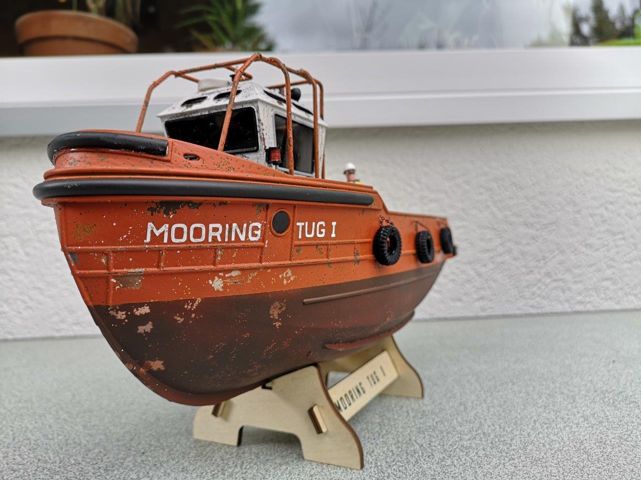 Nachdem ein paar Stände weiter auch noch ein passendes Lackpaket angeboten wurde, war klar, dass Matthias nicht ohne diesen Baukasten wieder nach Hause gehen konnte…Ab Seite 46 in der ModellWerft 06/2020 beschreibt er den Bau des kleinen Mooring Tugs und legt dabei das Hauptaugenmerk auf ein Experiment. Dabei geht es um die realistische Verwitterung des Bootes durch Salz. Das Resultat kann sich sehen lassen – die Alterungsspuren stehen denen an den Originalen in nichts nach!