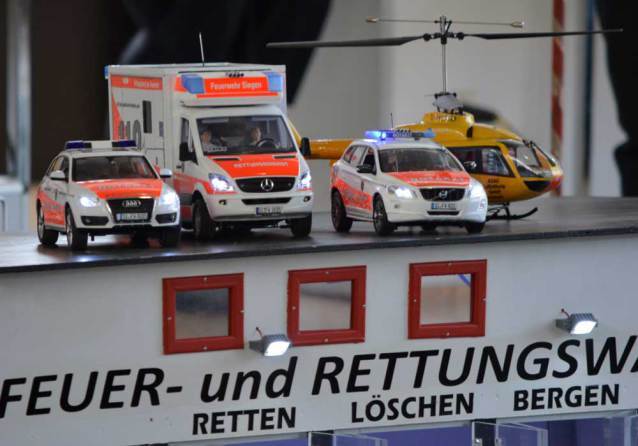 Weitere Attraktionen waren unteranderem zwei komplette Winterlandschaften mit Lift und Schneeraupen. Auch Fahrzeuge, die sich noch im Aufbau befinden, wurden dem Publikum vorgestellt um einmal zu vermitteln, welch ein Aufwand hinter solch einem Modell steckt. Vor der Halle konnte man dann Feuerwehrfahrzeuge, LKW´s und auch Oldtimer im Original bestaunen.