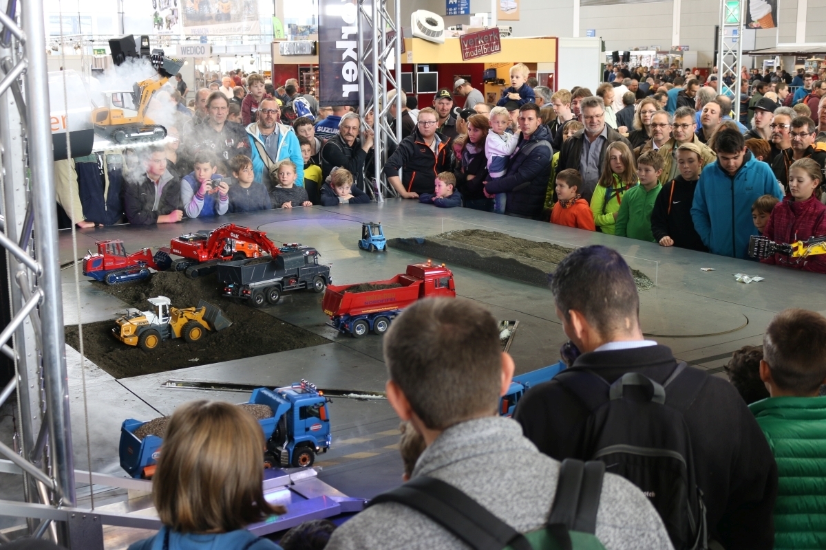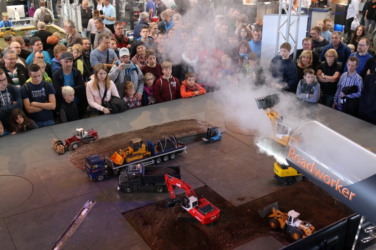 Besonders punkten konnten die Roadworker mit ihren neuen Thementagen zu verschiedenen Produktgruppen. So haben sie am Samstag beispielsweise einen besonderen Fokus auf Modell-Ladegut gelegt und die Lösungen der Firmen Andys Ladegut, Comvec und Kleine Welten gezeigt. Sonntag beim Baumaschinentag standen weiterhin die Modelle von Damitz Modelltechnik, Veroma und CTI im Vordergrund. Beim Einsteigertag am Freitag ging es um ScaleDrive-Fahrgestelle und Bruder-Modelle, im Vertrieb durch den Roadworker-Partner Böhm Modellwerkstatt.