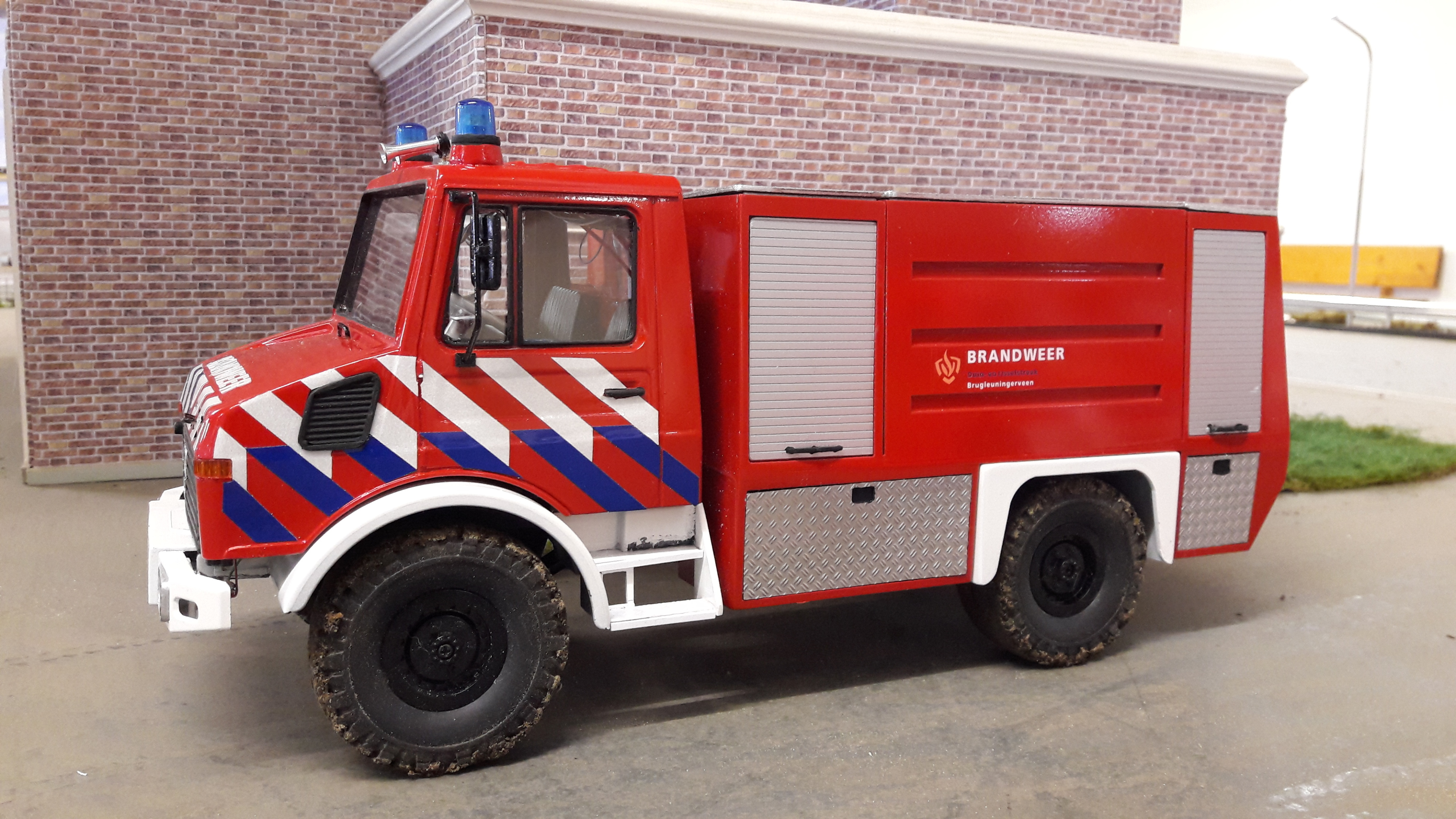 Geländegängig ist er, der Unimog, den Fred Keislair auf Basis eines WPL-Fahrgestells gebaut hat – und ausgestattet mit einer Menge Feuerwehrequipment, das sogar das Löschen von kleinen Bränden erlaubt.
