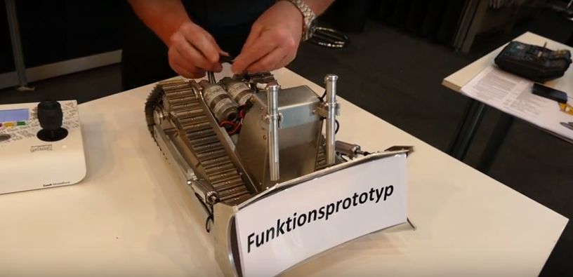 Auf der Messe Faszination Modelltech in Sinsheim 2016 zeigte Wedico am Messestand einen ersten Funktionsprototyp des neuen Kettendozers im Maßstab 1:14,5.