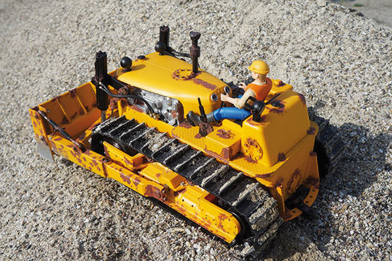Zu einem Zeitpunkt, als die Wahl für sein nächstes Modell schon feststand, entdeckte Matthias Buser in einem Internet-Modellbauforum einen Beitrag über den Umbau einer Gama-Laderaupe zu einer Planierraupe. Ab diesem Zeitpunkt war er von diesem Modell derart fasziniert, dass er sozusagen in letzter Sekunde sein Bauvorhaben zum Umbau der Bruder Caterpillar D10 Raupe fallen ließ und auf die Gama-Raupe umschwenkte. Seinen Umbaubericht finden Sie in der TRUCKmodell 1/2018