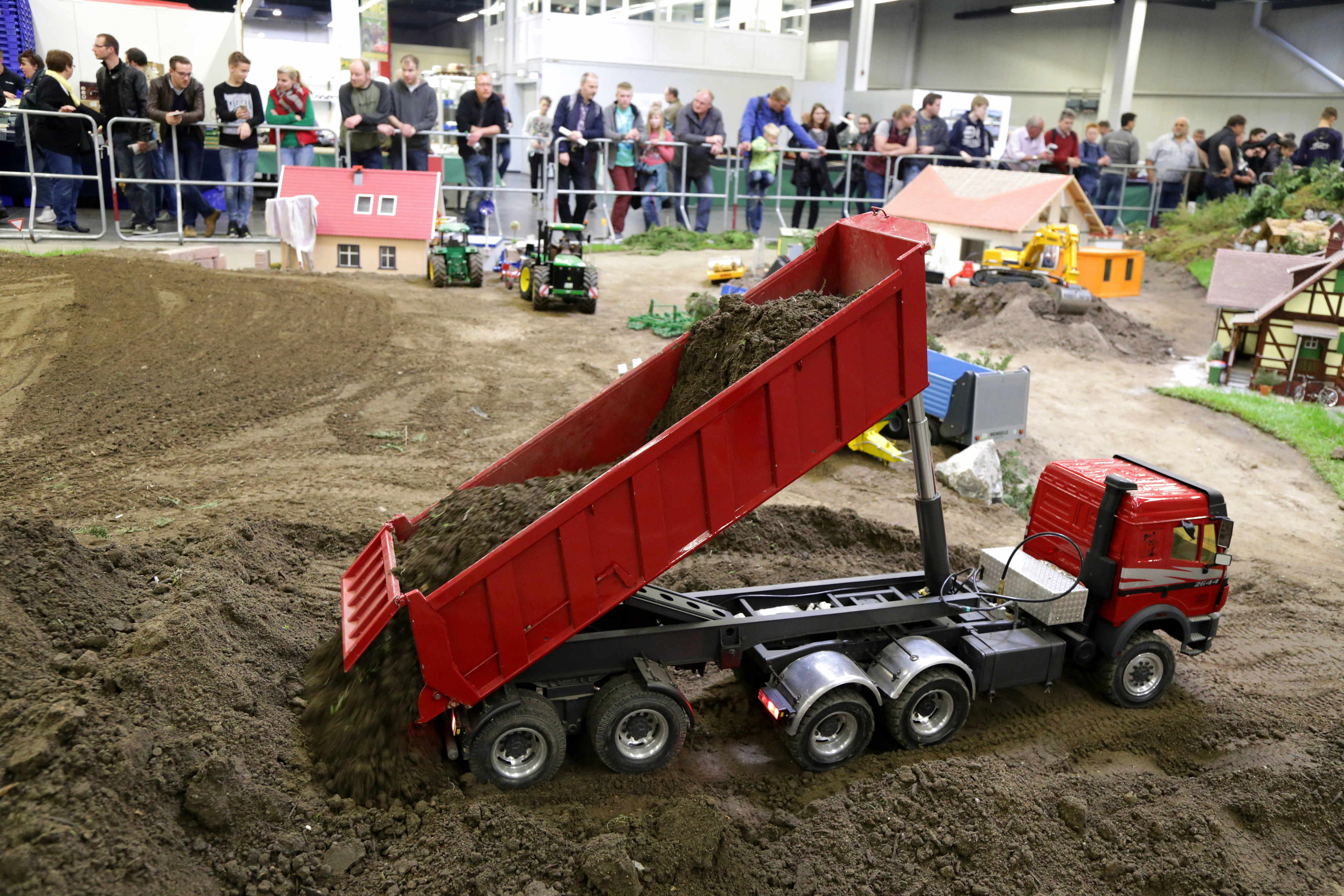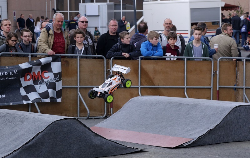 Auf der Außenfläche zwischen den Hallen 4 und 7 bewältigen Monstertrucks und andere Schwergewichte schwierige Prüfungen. Besucher, die lieber Jump-Cars starten, einen Axial-Crawler durchs Gelände steuern oder einen Buggy über die Piste brettern lassen möchten, haben hier die Gelegenheit dazu.