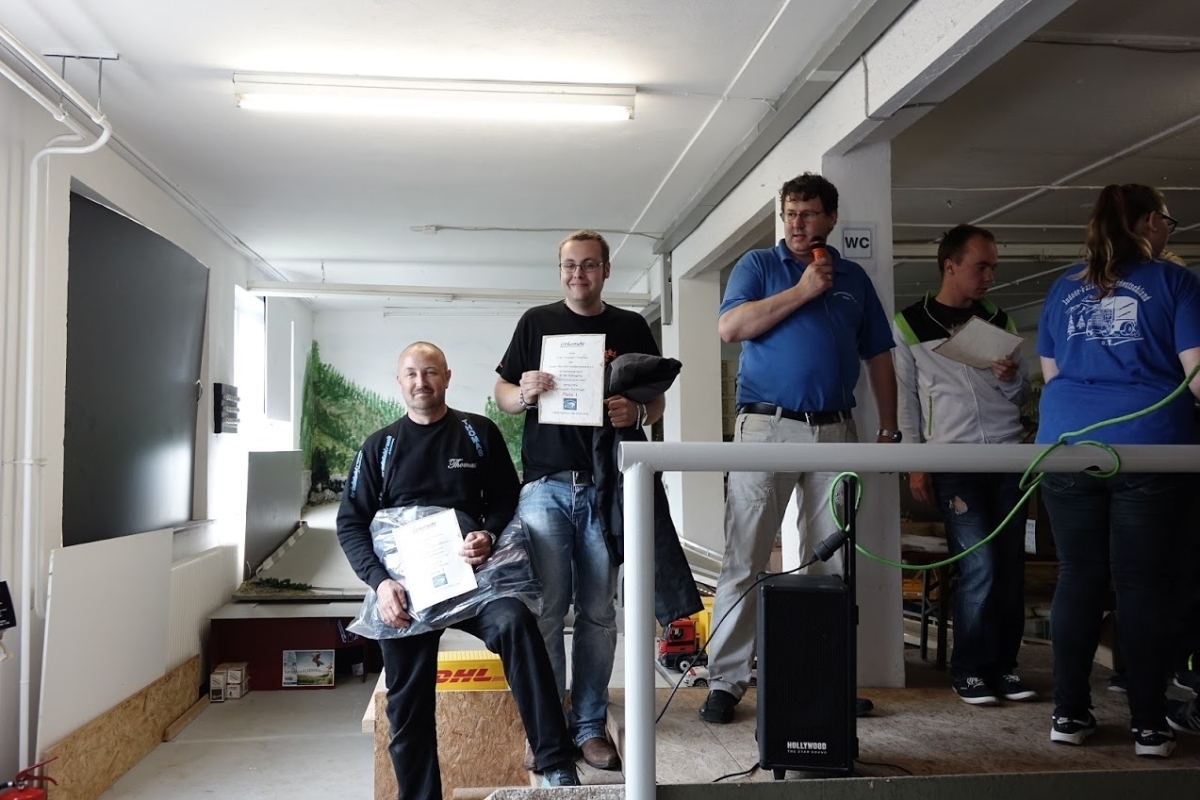 Zum Schluss wurde der Sieger des Publikums gewählt. Hierzu erhielt jeder Anwesende einen eigenen Stimmzettel, auf welchem das persönliche Lieblingsmodell vermerkt wurde. Hier gab es zwei Gewinner. Punktgleich siegten C. Albrecht mit seinem Scania „Black Warrior“ und T. Hörbinger seinem MB Sk 4x4 Dreiseitenkipper.