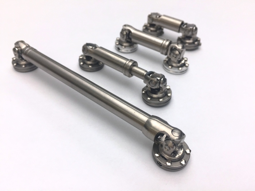 Komplett aus Edelstahl gefertigt, Verfügbarkeit ab März. Die Kardanwellen konnten kleiner gefertigt werden, sodass sich der Durchmesser verringert hat. Nun sind auch kürzere Längen ab 45mm möglich, mit Flansch für eine bessere Optik, passgenauer, kompatibel mit ScaleART Getrieben mit Antriebswelle 4mm.