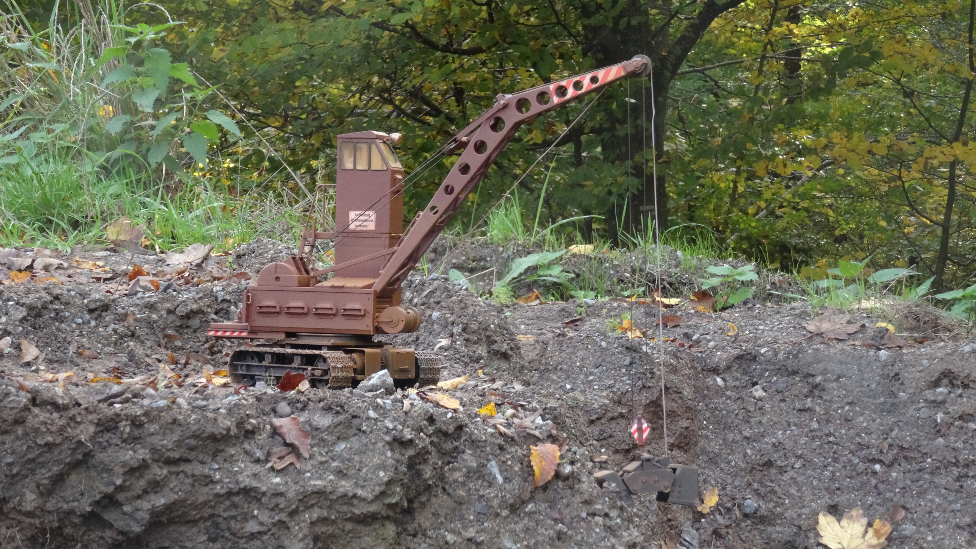 Nach seinem Autodrehkran hat Matthias Buser nun auch die Raupenvariante dieses Fahrzeugs als Modell nachgebaut – die ungewöhnlich hohe Kabine ist übrigens durch die Arbeit beim Güterumschlag und die Beladung von Dampflokomotiven mit Kohle bedingt.