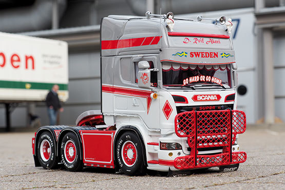 Christian Albrechts langjähriger Modellbaufreund Domenic Reif, fragte ihn, ob er seinen Scania umbauen könnte. Und genau damit, begann der Bau eines neuen, weiteren Showtrucks, nach dem Vento Adriatico (siehe TRUCKmodell 2/2016) und dem Black Warrior (siehe TRUCKmodell 5/2016 bis 1/2017). Domenic trafen Christian Albrecht auf etlichen Messen und Veranstaltungen wieder. Sie fachsimpelten über ihre Modelle und da kam der Wunsch, auf Domenics eigenen Showtruck auf.Was bei dem umfassenden Umbau herauskam, lesen Sie in der neuen TRUCKmodell.