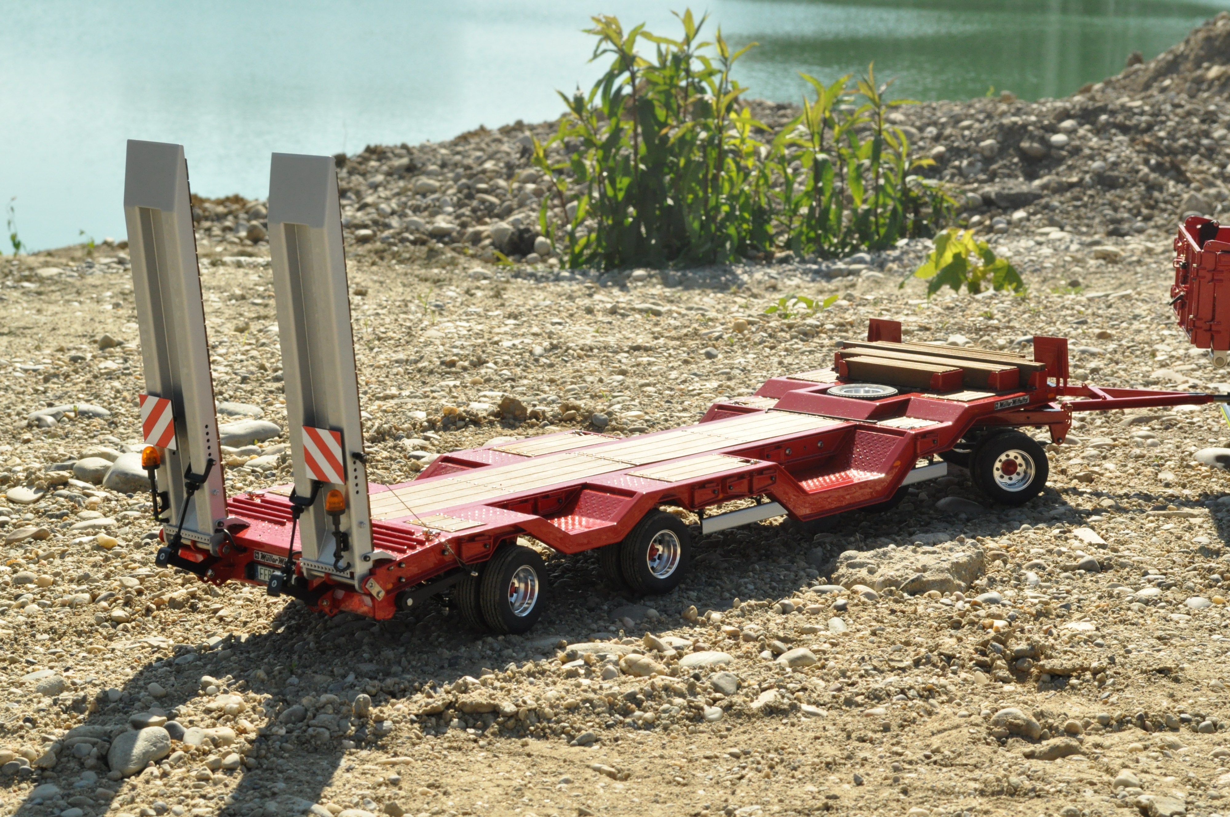 Wie kommen Baumaschinen auf die Baustelle? Mit einem entsprechenden Tieflader! Für seine Transporte hat Alexander Aufschläger den Anhänger mit Radmulden von ScaleART gebaut und berichtet darüber in der aktuellen TRUCKmodell.