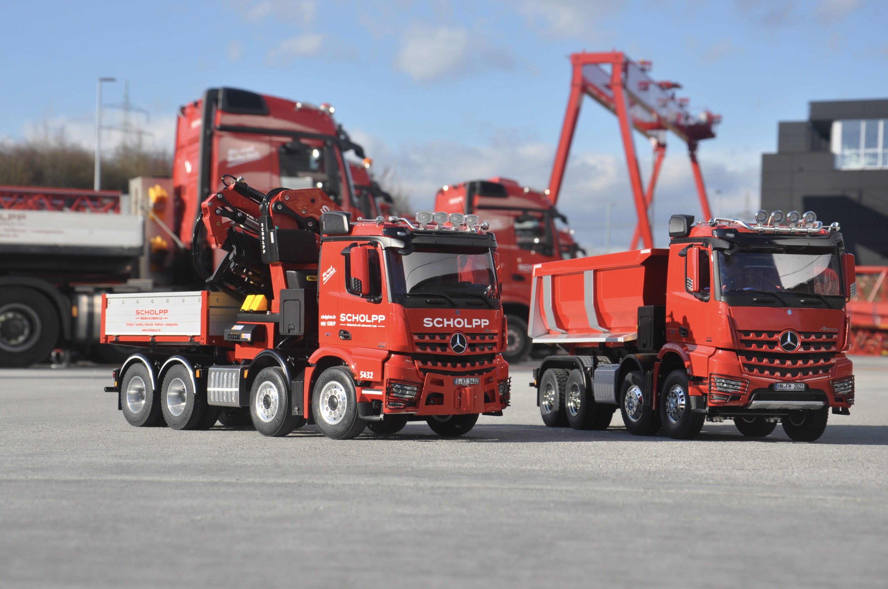 Auf der Basis des Arocs-Vierachkippers von Tamiya hat Dirk Berghoff ein außergewöhnliches Ladekranfahrzeug von Scholpp nachgebaut – mit jeder Menge Technik und Details! In seinem Beitrag in der TRUCKmodell 3/2022 schließt er das Projekt nun ab.