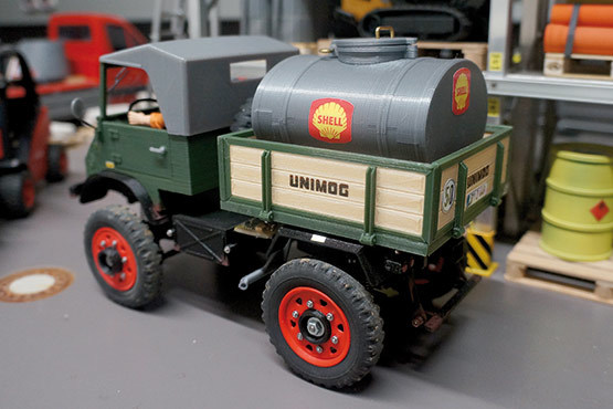 Der Unimog 411 ist schon aufgrund seiner kantigen Formen ideal für die ersten Versuche ein Fahrzeug für den 3D-Drucker zu konstruieren. Da Matthias Buser sich ohnehin in urigen Unimog verguckt hatte, war klar dass er entstand: Der Druckimog!