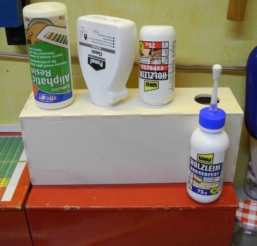 Damit der Holzleim immer einsatzbereit in Griffweite steht, haben wir in unsere CAD-Bibliothek eine Idee von Hermann Eichner für euch: der Leimflaschenhalter.