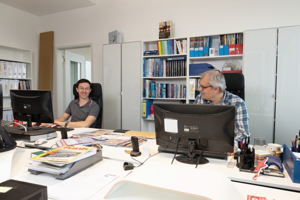 Unser Motto seit jeher: Erfolg und Freude potenzieren sich durch Zusammenhalt, Solidarität und gemeinschaftliche Arbeit im Team. Gemeinsam lassen sich durch das Einbringen der individuellen Stärken des Einzelnen, Projekte und Zielsetzungen erfolgreich realisieren. Und darin sieht Uwe das Erfolgsrezept der FMT und des ganzen Verlages. Die Produktionsprozesse im Verlag sind dabei mit einem Uhrwerk vergleichbar – klemmt ein Lager oder fehlt ein Zahnrad, steht die Uhr still.